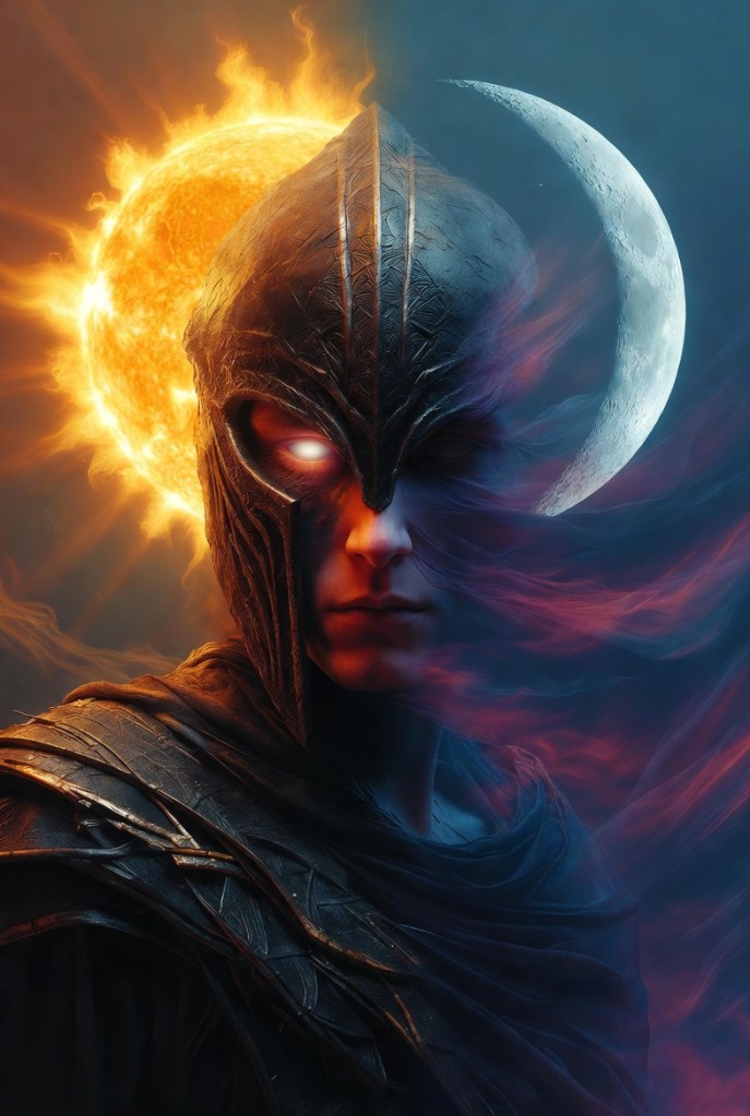 Behind one half burns the Sun, raw, living, devouring.