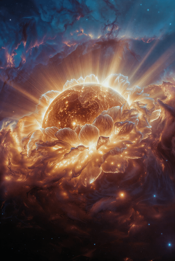 Light does not explode outward violently; it radiates with patience.